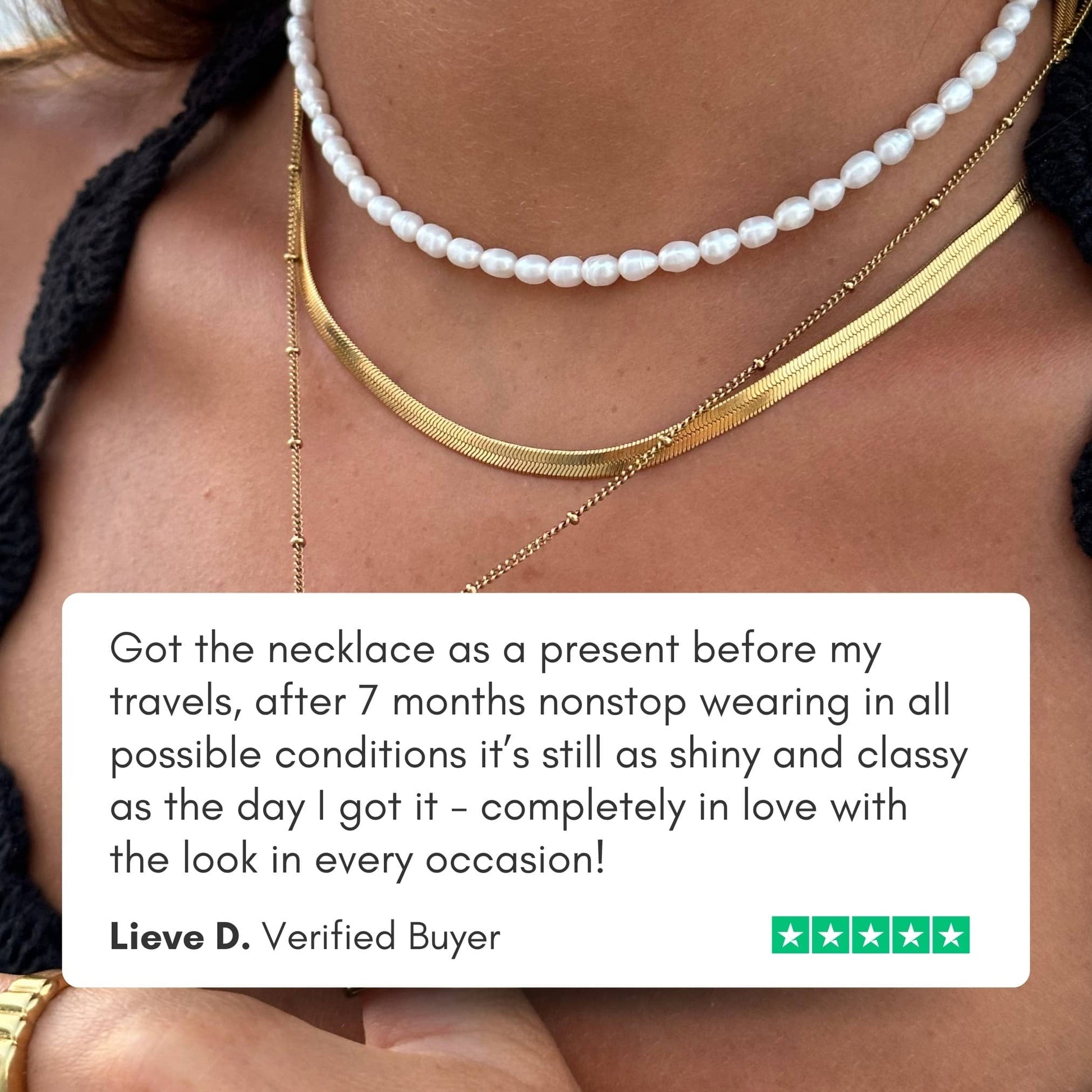 This lovely allrounder basically looks good on everything. The perfect waterproof piece to layer with our Freshwater Pearl Choker and our Baroque Pearl Necklace.
