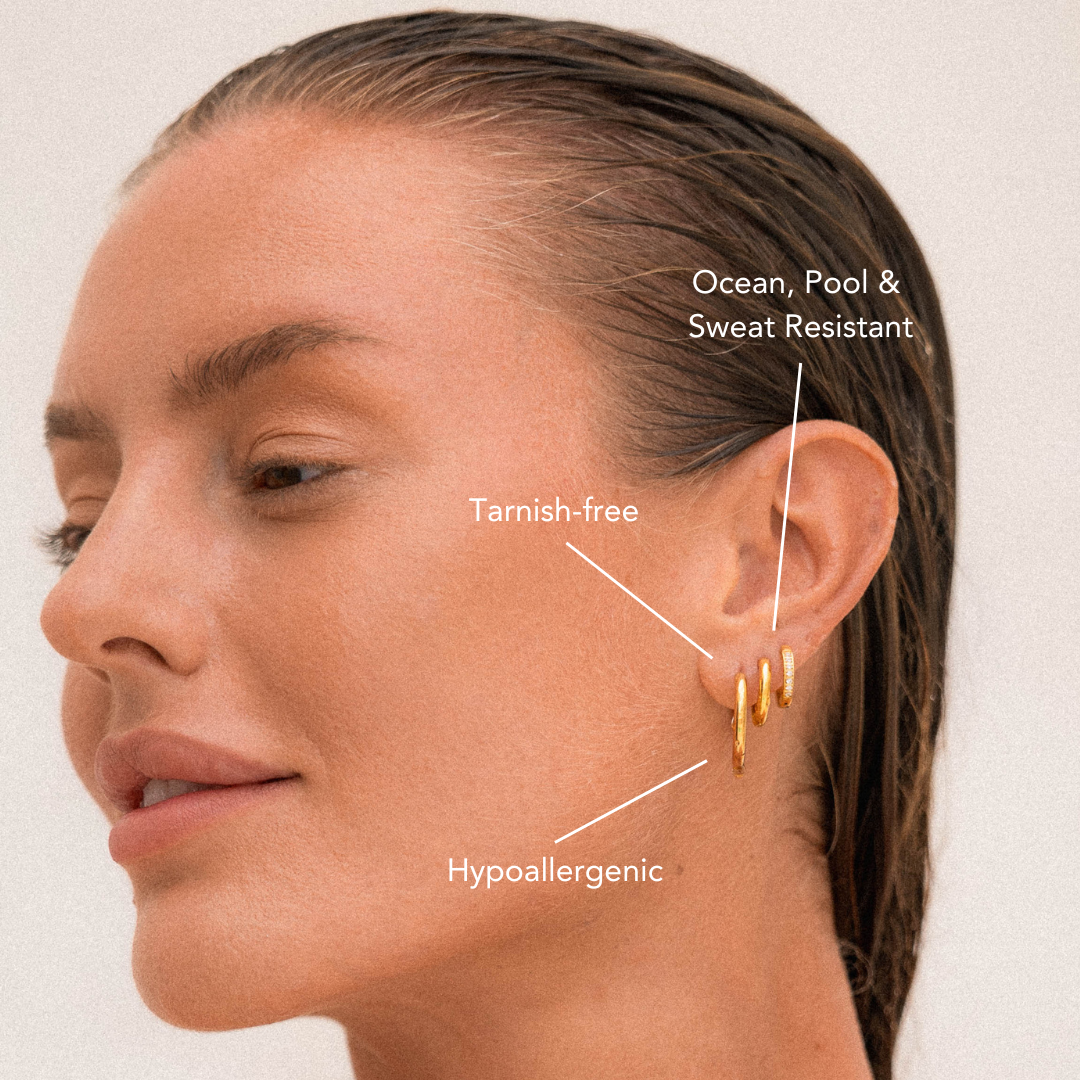 Trends come and go, hoops are forever. These waterproof and 18k gold plated earrings are the perfect addition to any outfit and so lightweight, you'll never want (and have) to take them off !